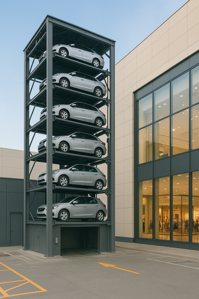 Gracias a su diseño vertical, estas torres permiten almacenar más autos en menos superficie, lo que es especialmente útil en zonas urbanas o centros comerciales con terreno limitado.